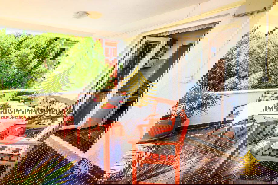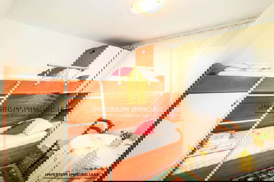 On the ground floor (56 m2), there are two fully furnished and equipped one-bedroom apartments, each with its own entrance. Both apartments include a kitchen, bedroom, bathroom with a shower, and a terrace. One terrace offers a sea view, while the other overlooks the garden. The ground floor also includes a hallway with an additional freezer and storage cabinets. Beneath the stairs, there is a semi-covered area that can easily be converted into extra storage space.