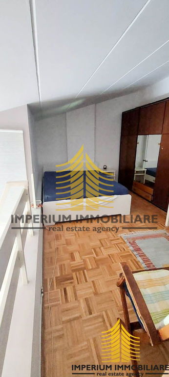 Na donjoj etaži se nalazi kuhinja, kupaonica, dnevna soba, balkon i spavaća sobu, a na gornjoj etaži imate dvije sobe od kojij jedna ima 16 m2, a druga 5 m2.