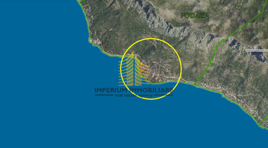 Površina 4876 m2 (označeno kao T-1 građevinsko zemljište, idealno za luksuzne srednje/male hotele, 6-8 luksuznih vila, ukupno 150-200 kreveta).