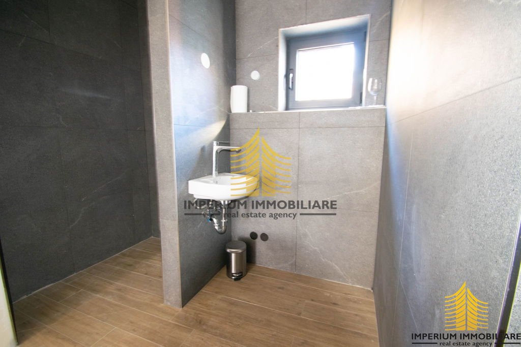 Opis Prostora: Prostor se sastoji od dva toaleta, hodnika, tri odvojene prostorije te prostrane terase. Dodatno, u podrumu zgrade nalaze se ostava i privatno garažno mjesto.