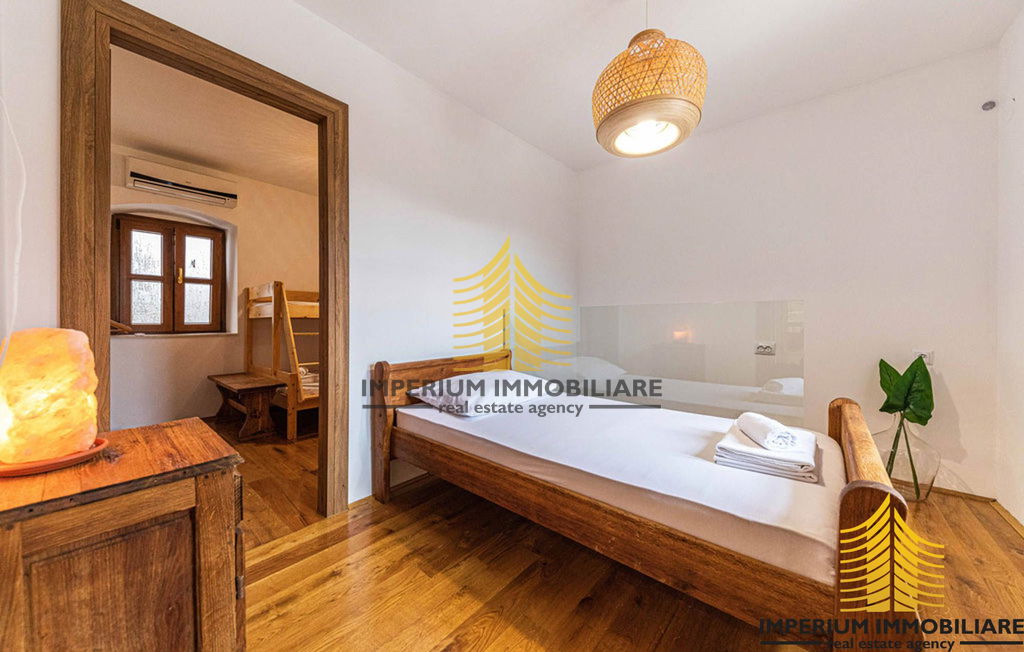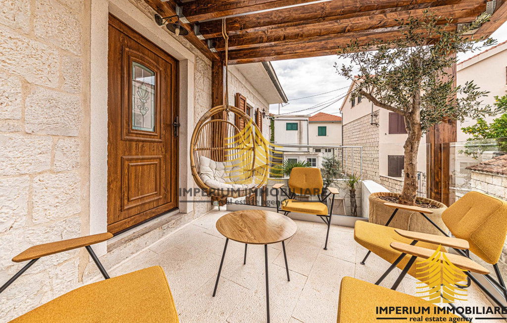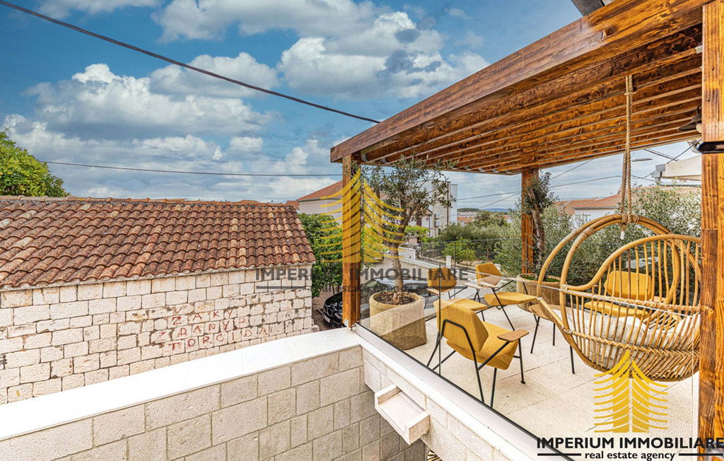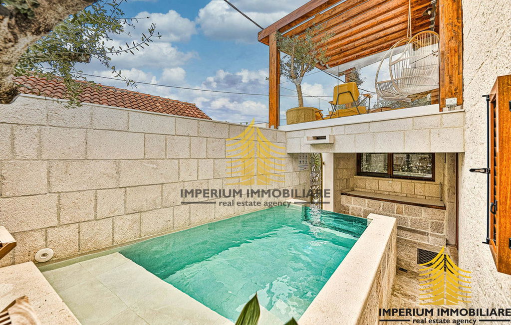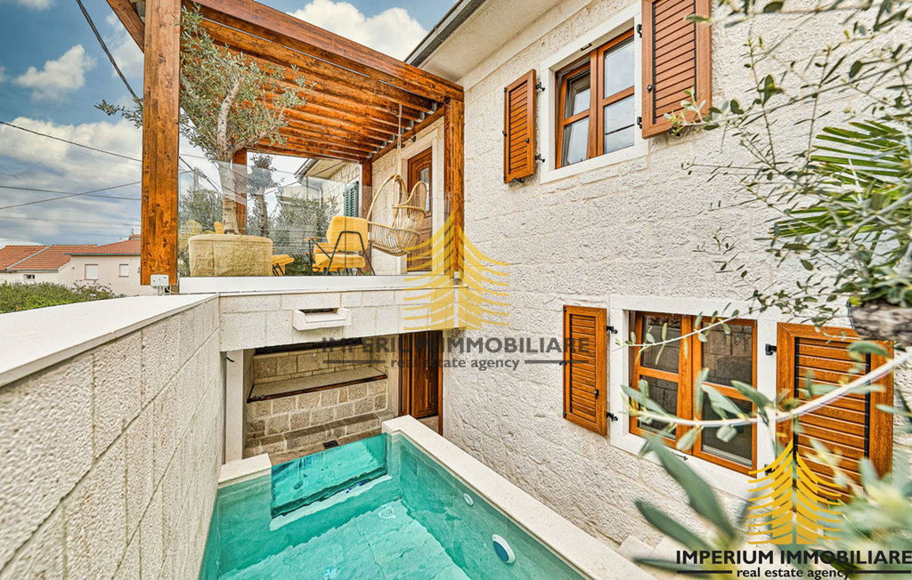 This stunning villa in Okrug Gornji is the perfect blend of modern luxury and traditional charm. Spread over two floors, the house consists of 3 spacious bedrooms, 2 luxurious bathrooms, a living room, kitchen, and dining area.
