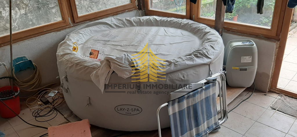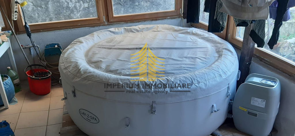 U prizemlju se nalaze kuhinja, dnevni boravak, spavaća soba, kupaonica, WC, spremište te zatvorena terasa s jacuzzijem.