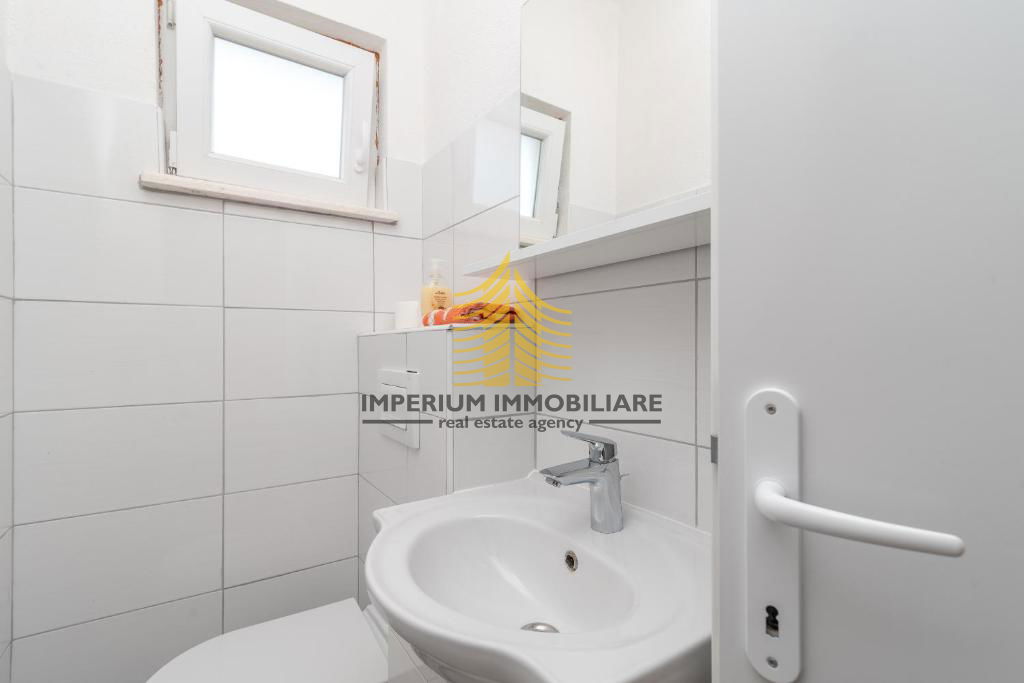 Prizemlje površine 72.34 m2 kuće nudi funkcionalan prostor s garažom, konobom i kupaonicom koji je preuređen u jednosobni i studio apartman, idealan za iznajmljivanje.