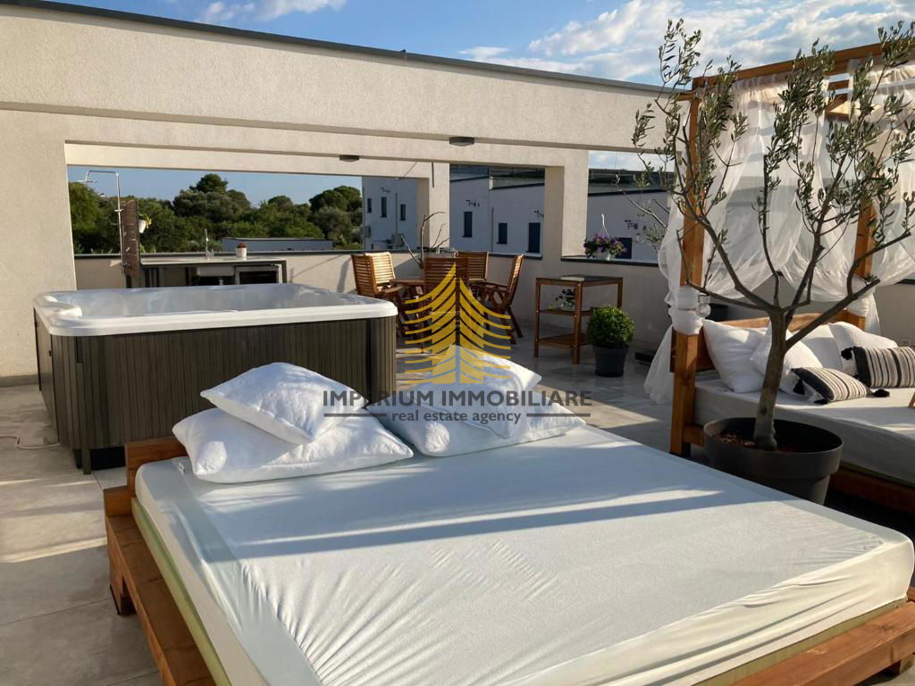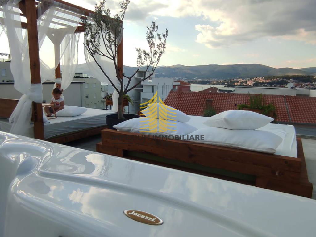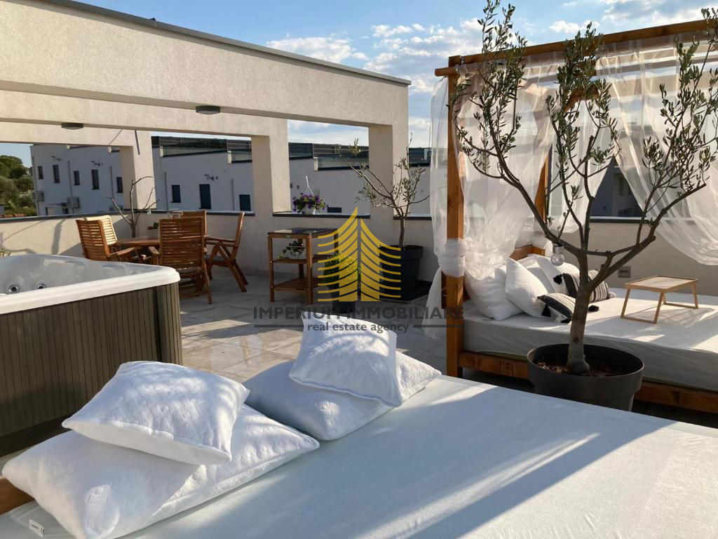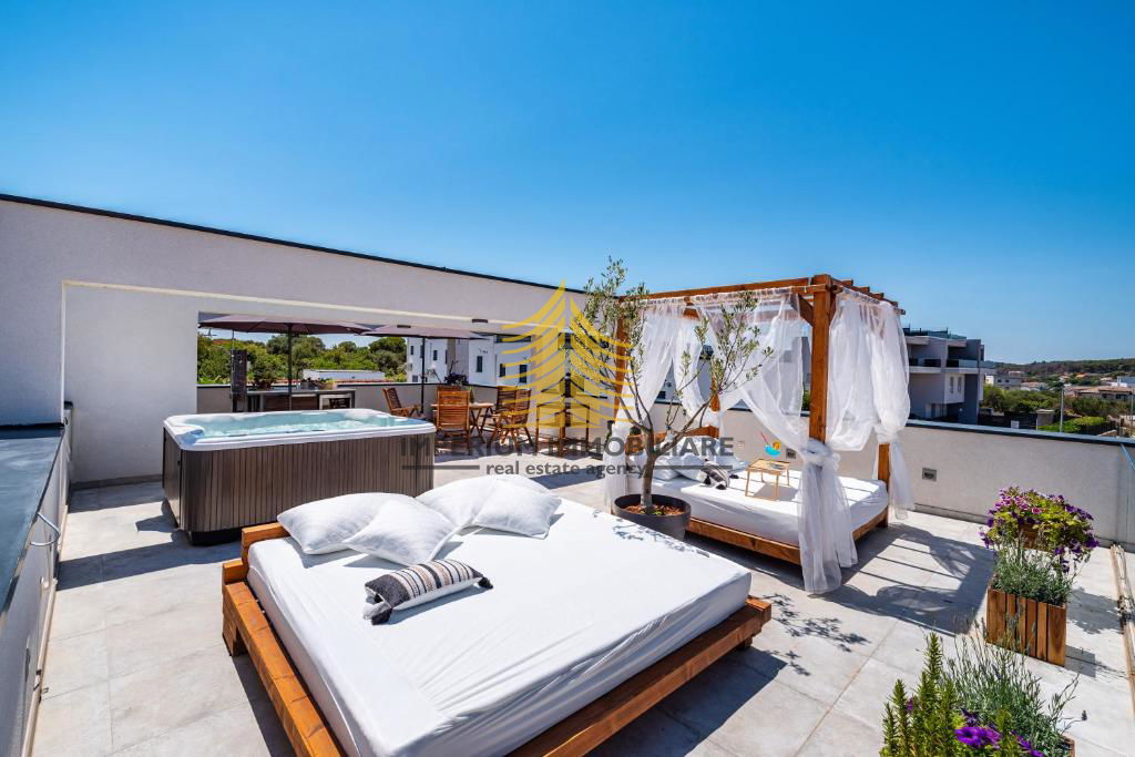 Ova nekretnina nudi niz luksuznih pogodnosti koje podižu kvalitetu života na višu razinu: sauna, jacuzzi, bazen, wellness zona, prostor za fitnes i roštilj, idealni za opuštanje i druženje. Dodatno, dizajnerski elementi interijera pažljivo su birani kako bi zadovoljili i najzahtjevnije ukuse.