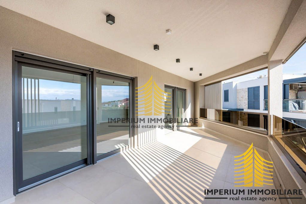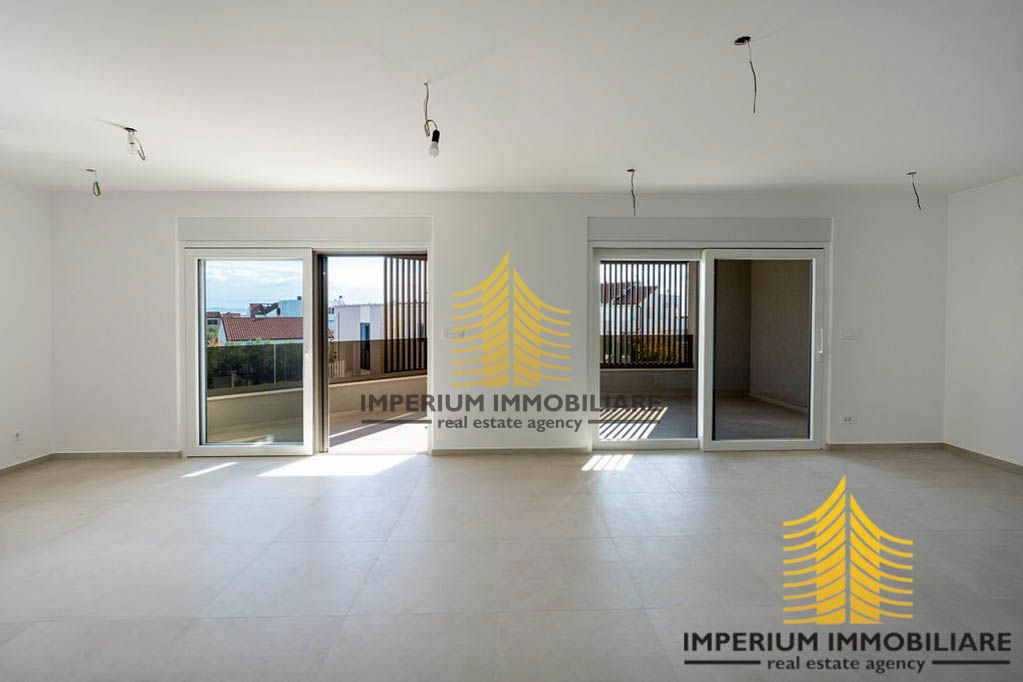 Prodaje se luksuzan stan smješten na prvom katu ekskluzivne stambene zgrade s četiri etaže (podrum, prizemlje, prvi i drugi kat). Stan se nalazi u modernom objektu vrhunske arhitekture, na odličnoj lokaciji nedaleko od novo uređene šetnice uz more, svega 450 metara od plaže.