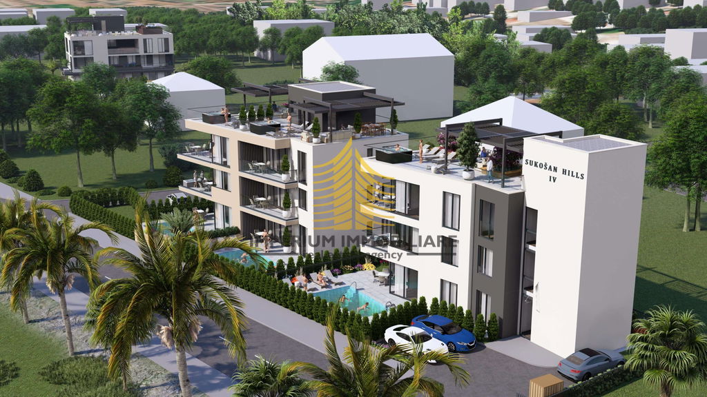 Prodaje se luksuzni stan u Sukošanu, smješten na drugom katu trokatne zgrade, ukupne površine 405,78 m2. Ovaj prostrani stan izgrađen je 2025. godine i nudi savršen spoj modernog dizajna i prirodnog okruženja.