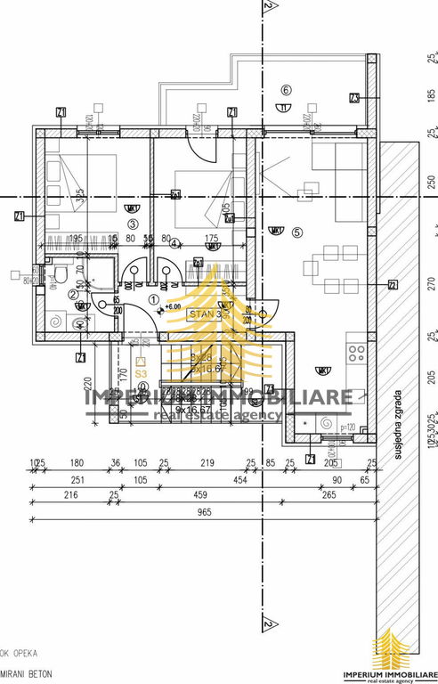 Veličina: 56 m2 + balkon 8 m2