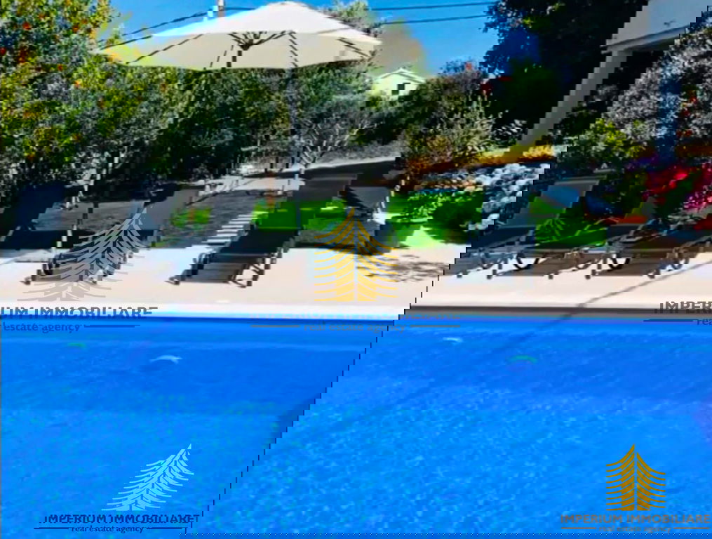 For sale is a stunning detached house with a spacious garden of 480 m2, located in a peaceful and attractive area of Arbanija, just a few minutes' walk from the most beautiful beaches. The house spreads over three levels with a total living area of 250 m2 and consists of three separate residential units, making it ideal for family living or as a rental investment.
