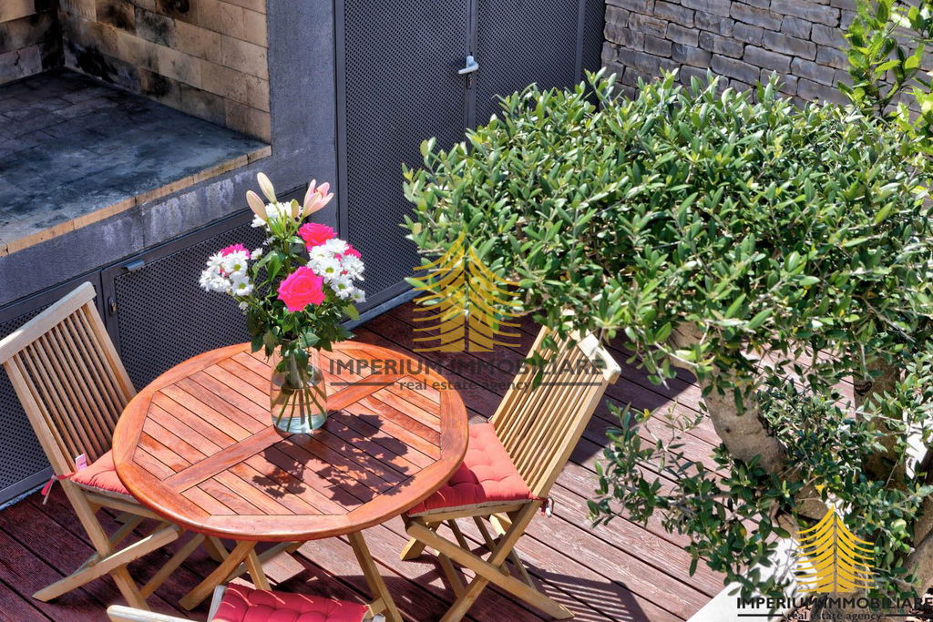 Drugi kat uključuje dnevnu soba s potpuno opremljenom kuhinjom te unutarnjim i vanjskim prostorom za blagovanje s prekrasnim pogledom na more. Krovna terasa nudi privatni grijani bazen, ležaljke i suncobrane te kamin za pripremu mediteranskih jela.
