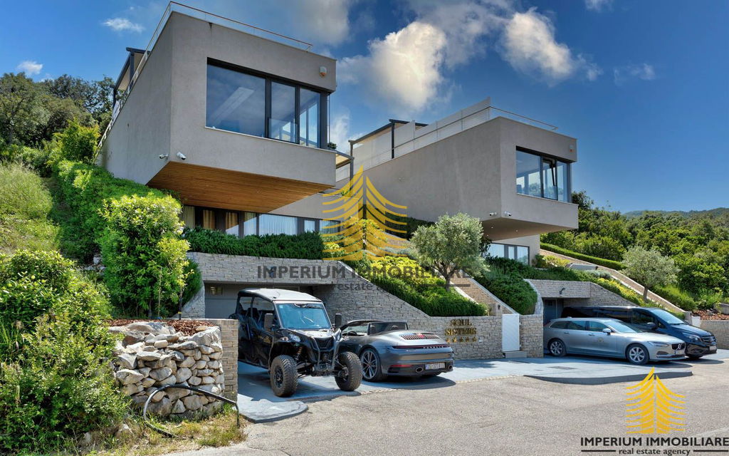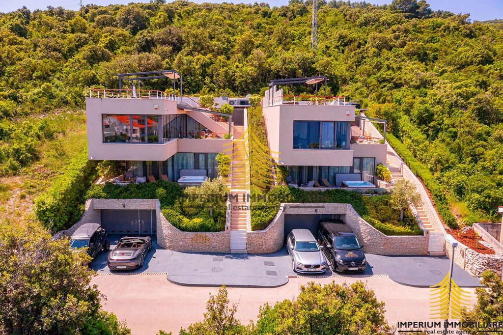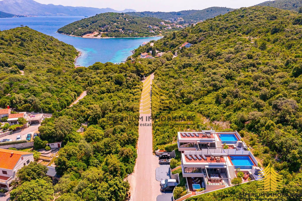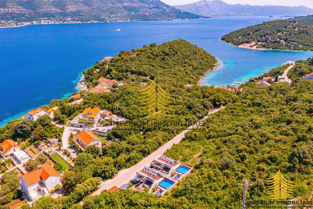 Na otoku Korčuli, prodaje se predivan moderan unikatni objekt s pogledom na more i planine koji se sastoji od dvije vile „blizanke“. Ovo je višestruko nagrađivani objekt za svoja arhitektonska rješenja koja nude izniman dizajn i visoku razinu luksuza. Nalaze se 300 metara od plaže Tri žala. Plaža Vrbovica udaljena je 1,3 km, a plaža Žrnovo 1,6 km.