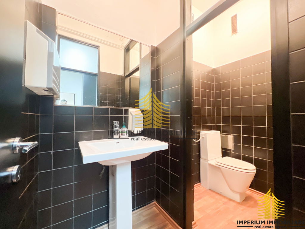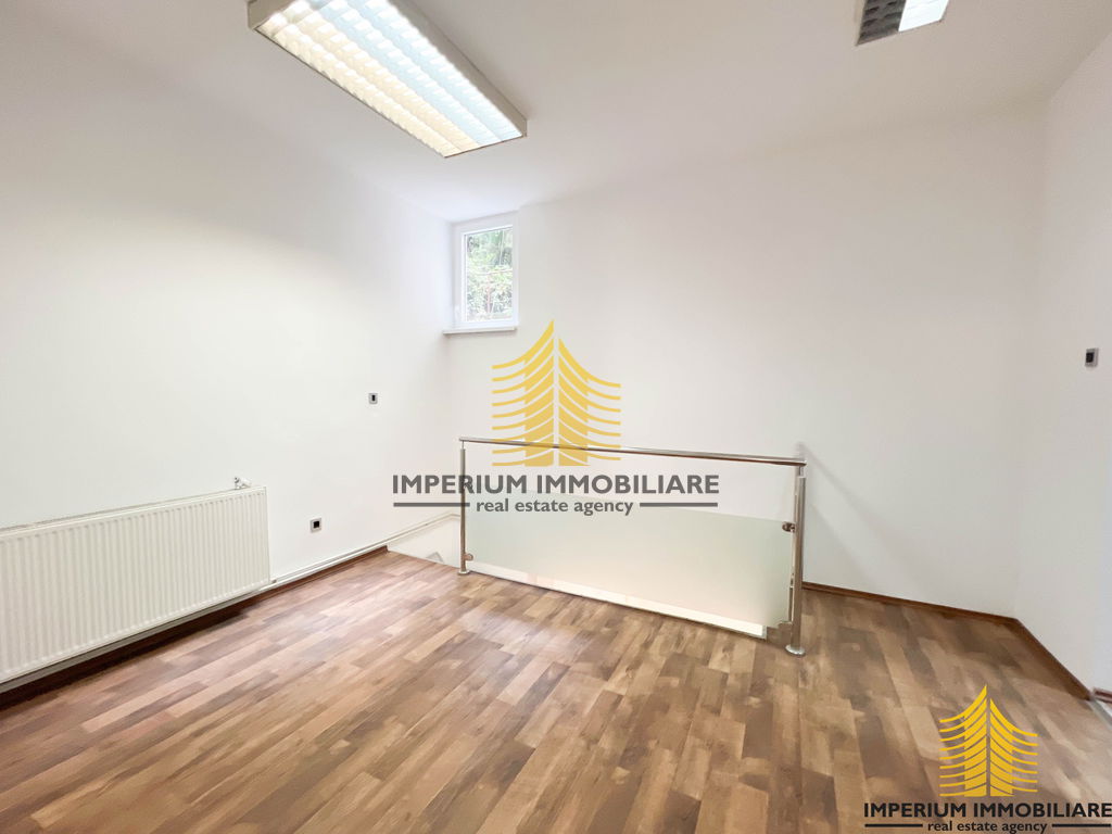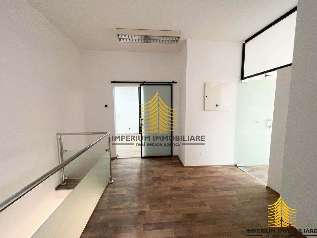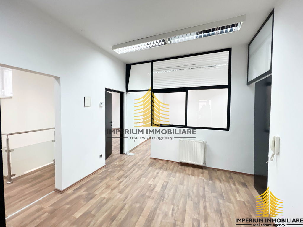 Samo prizemlje (100 m2) se sastoji od pet zasebnih prostorija, muškog i ženskog toaleta te čajne kuhinje dok je ulaz u poslovni prostor moguć sa strane ulaza u zgradu i samog poslovnog prostora orijentiran na cestu.