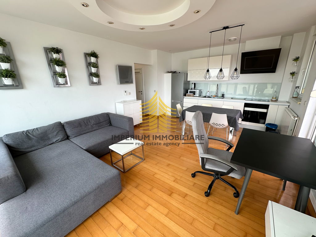 Interijer je opremljen kuhinjom s aparatima, perilicom posuđa, perilicom rublja, kadom, TV-om i krevetom, čime je stan spreman za useljenje bez potrebe za dodatnim ulaganjima.