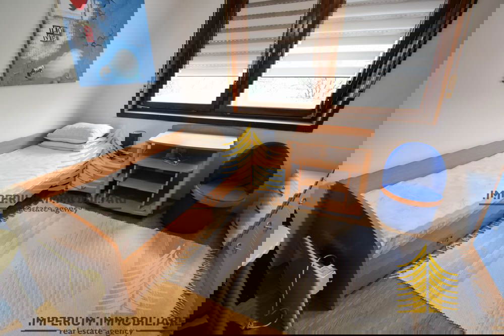 Stan se nalazi na mirnoj lokaciji idealan za obitelj ili studente s obzirom na blizinu fakulteta te centra.