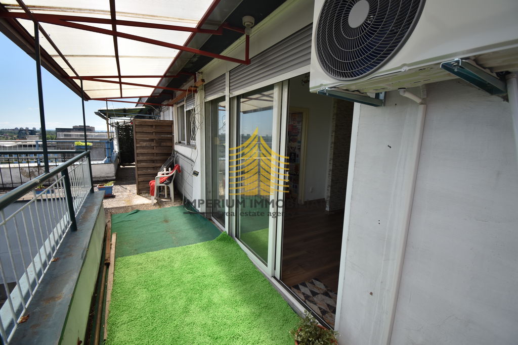 Stan je vrlo sunčan zahvaljujući istočnoj orijentaciji, a lijep pogled s terase dodatno pridonosi atraktivnosti ove nekretnine. Terasa pruža ugodan prostor za opuštanje i uživanje u panorami grada. Posebna prednost je što se stan nalazi na zadnjem katu zgrade, čime je zajamčena privatnost i mir.