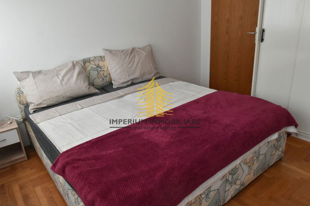 Ovaj prostrani stan sastoji se od jedne spavaće sobe i dodatnih prostora, idealnih za ugodan životni stil. Kuhinja je opremljena svim potrebnim aparatima, a dnevni boravak uključuje TV, pružajući dodatnu udobnost. Lođa je savršeno mjesto za opuštanje i uživanje u mirnoj lokaciji koju stan nudi.