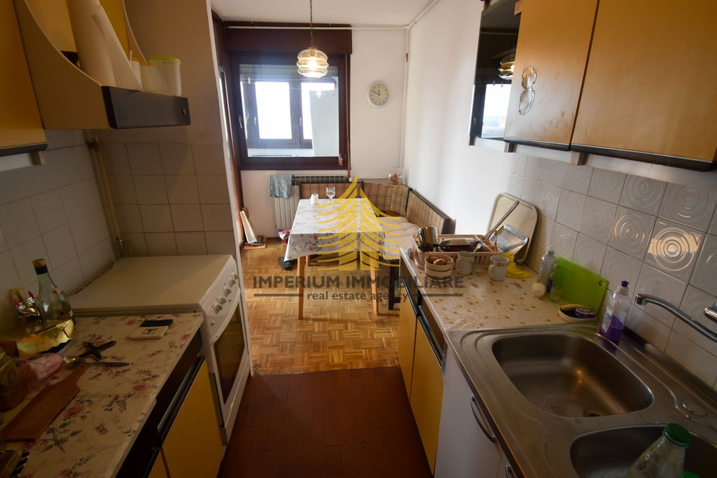 Prodaje se prostrani 3-sobni stan površine 92 m2, smješten na devetom katu zgrade u mirnom kvartu Prečko, Zagreb. Stan se nalazi na posljednjem, devetom katu zgrade, pružajući prekrasan pogled i obilje sunčeve svjetlosti zahvaljujući zapadnoj i južnoj orijentaciji.