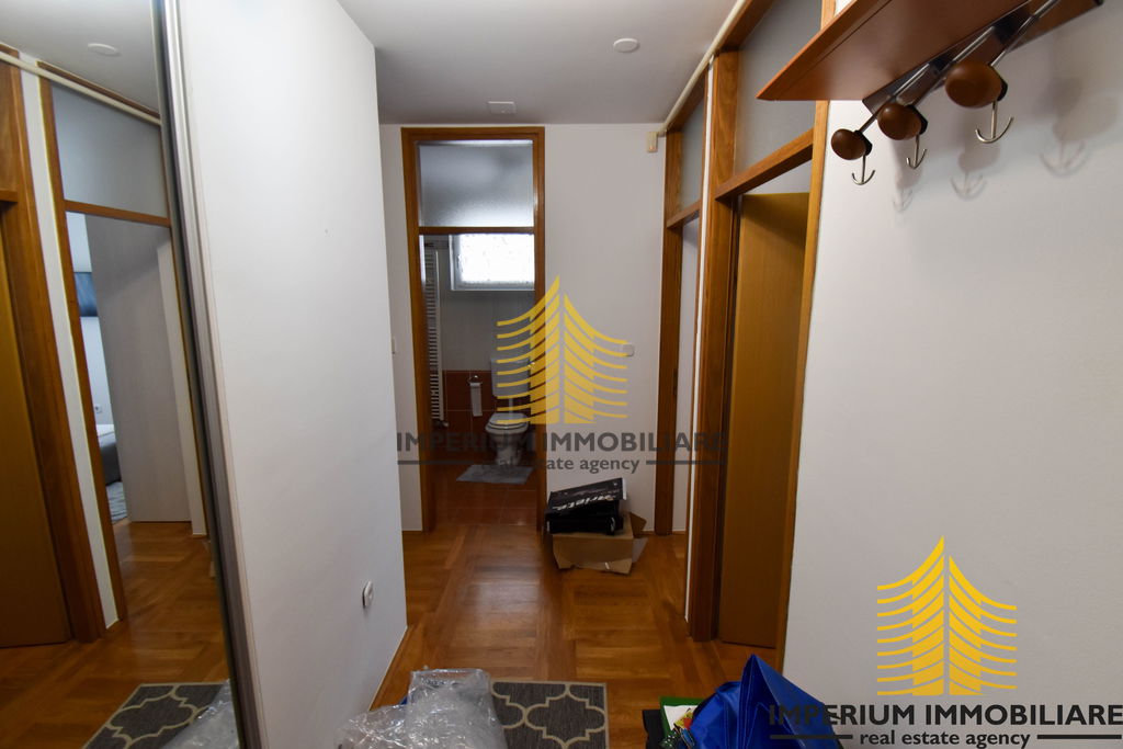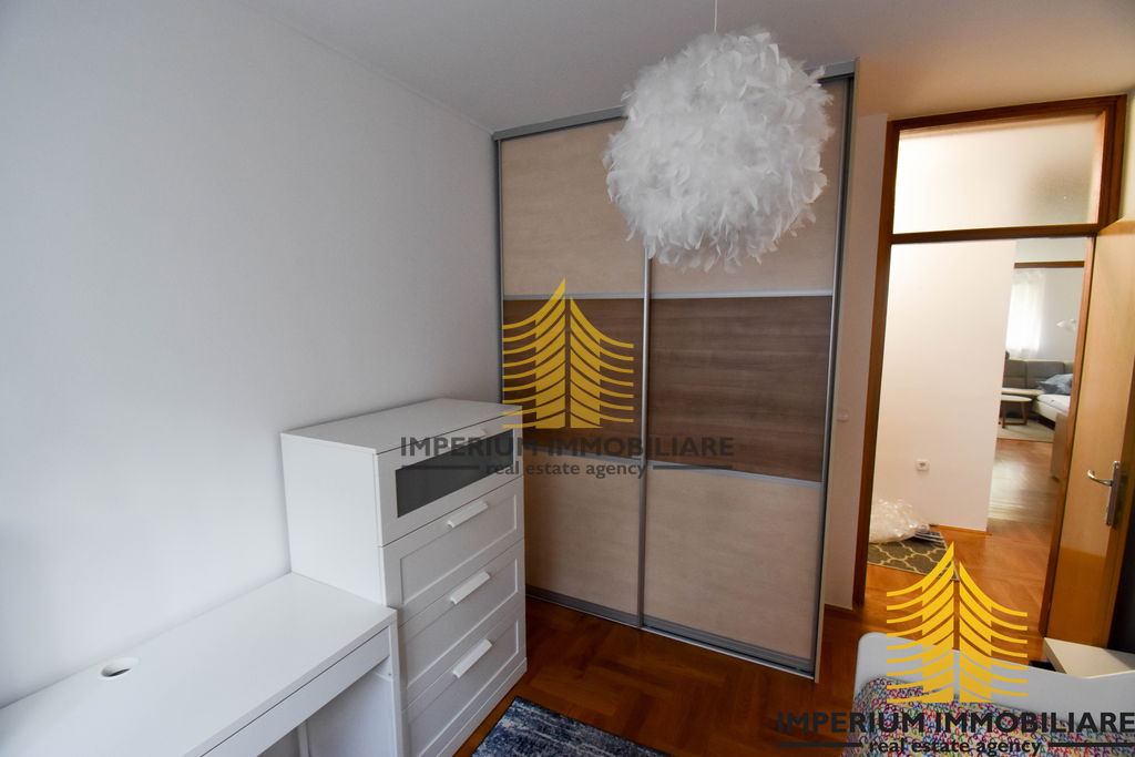 Stan je pažljivo organiziran, s odvojenim dnevnim boravkom, hodnikom, kuhinjom, blagovaonicom te dvije spavaće sobe. Dodatna vrijednost prostoru daje balkon koji omogućuje uživanje u sunčanim danima. Središnje grijanje osigurava ugodnu temperaturu tijekom cijele godine, dok klima uređaj nudi osvježenje tijekom toplijih mjeseci.