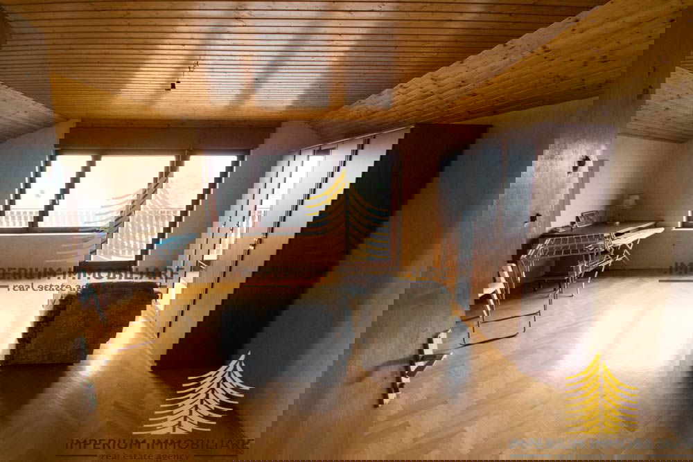 U visokom potkrovlju nalazi se velika otvorena prostorija, koja može poslužiti kao prostor za zabavu, teretanu ili kućni ured. Iz potkrovlja se izlazi na prostrani balkon s izvanrednim pogledom na cijeli grad. Uz to, potkrovlje uključuje i jednu manju prostoriju, kupaonicu s toaletom te tavan za dodatno spremište.