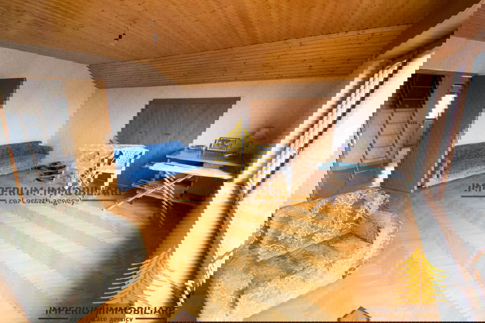 Na mirnoj i atraktivnoj lokaciji iznajmljuje se obiteljska kuća koja se prostire na tri etaže, s ukupno dva stana i visokim potkrovljem. Kuća je idealna za veće obitelji ili one koji žele kombinirati stambeni i poslovni prostor, s obzirom na njezinu praktičnost i funkcionalnost.